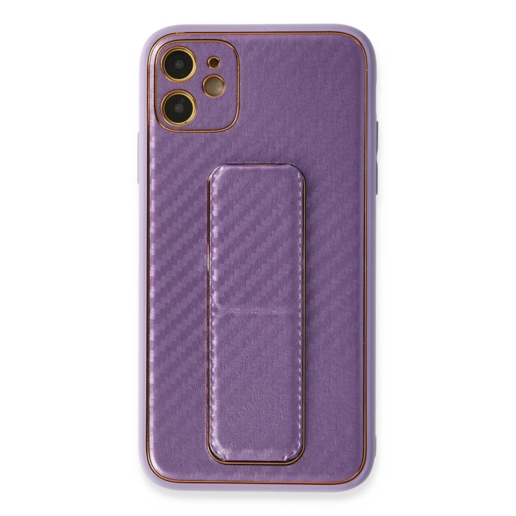 İphone 12 Kılıf Coco Karbon Standlı Kapak - Mor