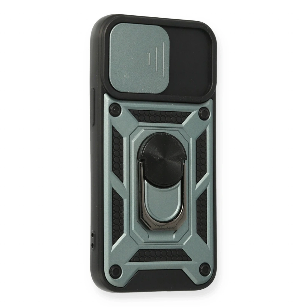 İphone 12 Mini Kılıf Pars Lens Yüzüklü Silikon - Yeşil