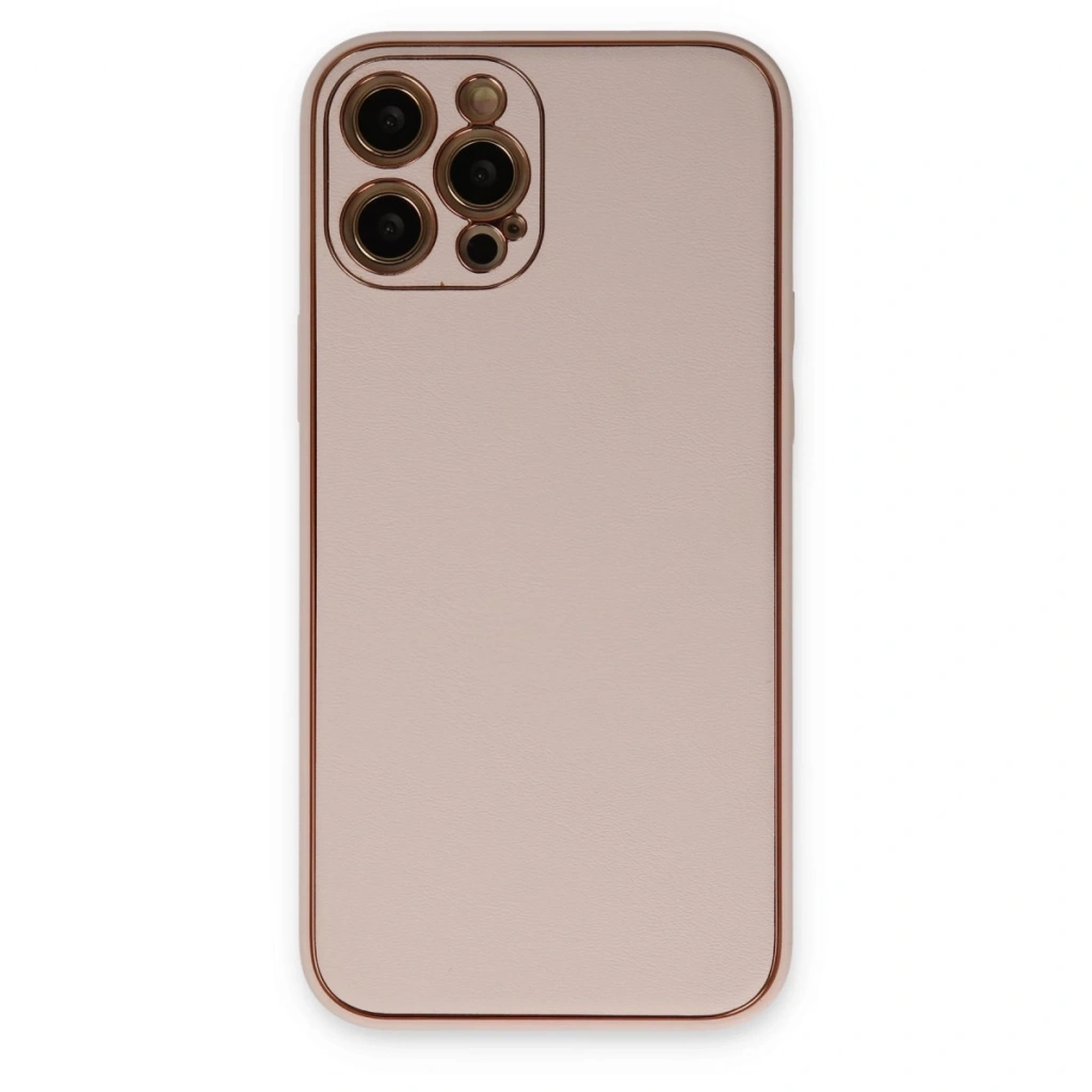İphone 12 Pro Max Kılıf Coco Deri Silikon Kapak - Pudra