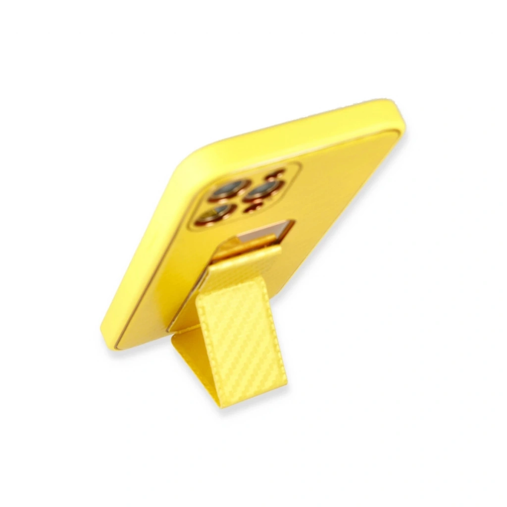 İphone 12 Pro Max Kılıf Coco Karbon Standlı Kapak - Sarı