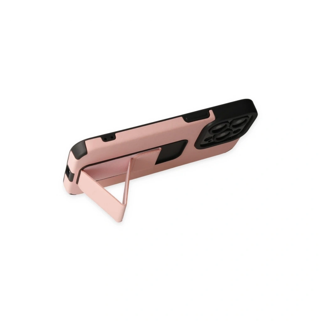 İphone 14 Pro Kılıf Mega Standlı Silikon - Pudra